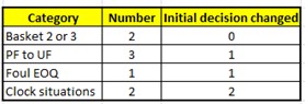 In 16 games we had 6 UF decisions, less than the average in previous seasons. From the 6 decisions 2 ended with incorrect final decisions. 1 of 2 calls, made during transition, we looked for UF criteria, but the correct decision should have been a no call.