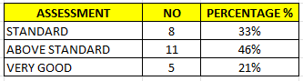As you can see, you are moving towards the desired level of the officiating, our target of above standard, as our new standard.