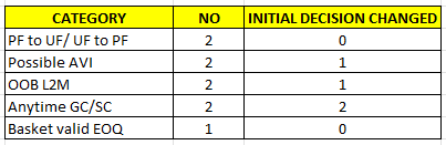 We also had one incorrect not called UF, criteria C2. You have the chance