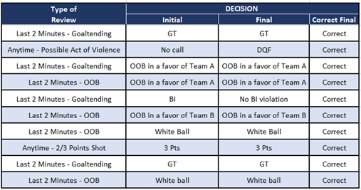 Thank you to all nominated Referees and Referee Instructors for your officiating delivery last week. We have a very intensive round of BCL games in front of us and our best work is required. After the L16 GD04, a lot of teams have the chance to go forward to quarter final rounds. From the Referee Instructors' feedback, and my monitoring, I can tell you that this week the overall performance was the best officiating week this season. With the note, that one game unfortunately, was decided by our mistake.