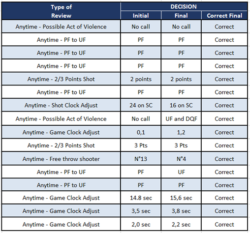 Coaches asked in 10 situations for HCC. Our Referees used it 16 times to clarify their decisions. The most important is, all 26 IRS situations ended with the correct final decision. In 3 games (from 9) we had 17 IRS usages. The average length of a review was 68 seconds.